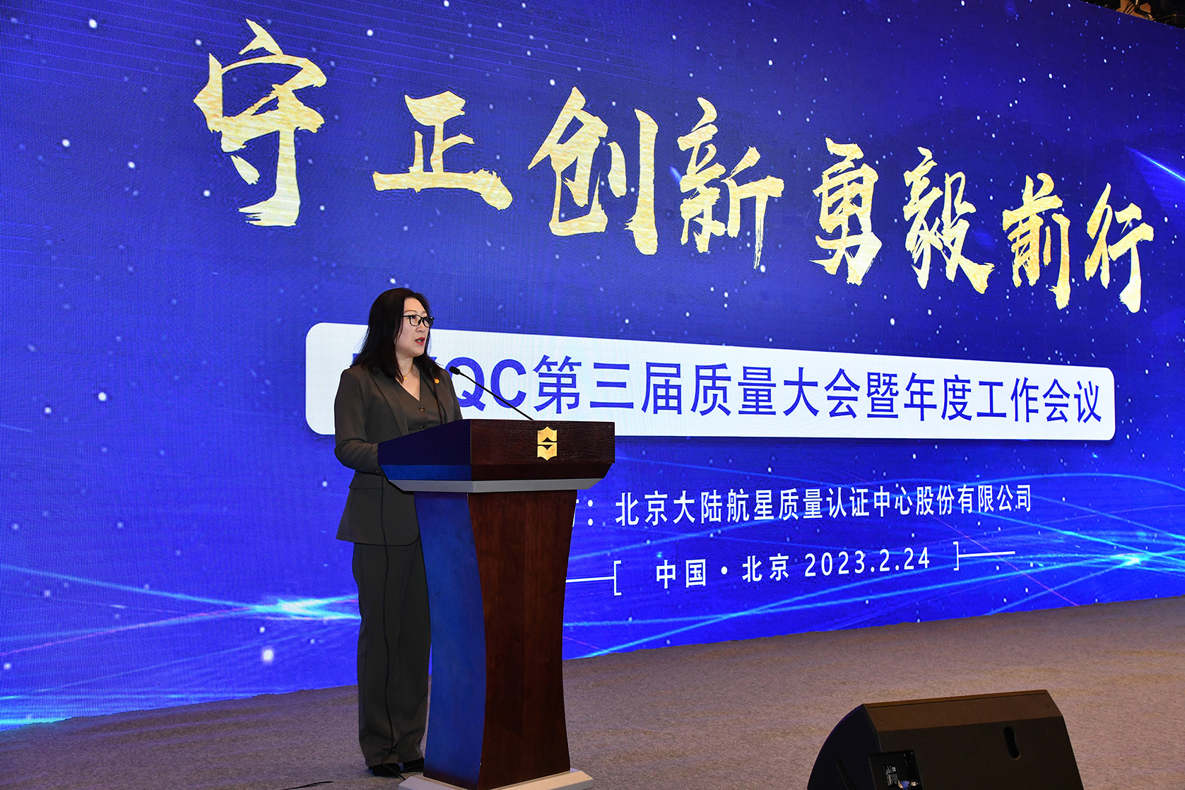會(huì)議首先由HXQC董事長(zhǎng)江芳博士作主旨報(bào)告。本次大會(huì)距離第二屆質(zhì)量大會(huì)已經(jīng)過去了3年,也正是重合了新冠病毒肆虐全球的3年,新冠疫情無論對(duì)國(guó)家的國(guó)民經(jīng)濟(jì)增長(zhǎng)、行業(yè)和企業(yè)的發(fā)展,以及家庭和個(gè)人的生活及健康,都產(chǎn)生了嚴(yán)重的影響。但是在上級(jí)領(lǐng)導(dǎo)的親切關(guān)懷和悉心指導(dǎo)下,在廣大客戶的高度信任和精心協(xié)助下,在公司全體員工精誠(chéng)團(tuán)結(jié)和頑強(qiáng)拼搏下,HXQC直面復(fù)雜形勢(shì)和挑戰(zhàn),克服種種困難,今年更是創(chuàng)造了航星認(rèn)證創(chuàng)立23年來發(fā)展歷史上的最好業(yè)績(jī):截止2022年底,航星認(rèn)證共有從業(yè)人員2200人,其中擁有中高級(jí)職稱占總?cè)藬?shù)的45%,已經(jīng)向客戶頒發(fā)認(rèn)證證書27608張,擁有獲證客戶達(dá)到12356家,分支機(jī)構(gòu)已達(dá)到27個(gè),服務(wù)網(wǎng)絡(luò)已基本覆蓋國(guó)內(nèi)所有地區(qū),而航星認(rèn)證業(yè)務(wù)范圍已覆蓋管理體系認(rèn)證、服務(wù)認(rèn)證和產(chǎn)品認(rèn)證三大認(rèn)證類別,在保持傳統(tǒng)領(lǐng)域業(yè)務(wù)的同時(shí),加大了碳核查、碳中和認(rèn)證等新領(lǐng)域的創(chuàng)新和研發(fā)力度。2021年和2022年航星認(rèn)證的全年?duì)I業(yè)收入較上一年度增速均超過25%,在如此艱難的環(huán)境中,航星認(rèn)證不僅沒有裁員,沒有減薪,還保證了員工待遇的連年增長(zhǎng),提升了員工的幸福感和獲得感。2023年HXQC將繼續(xù)堅(jiān)持通過先進(jìn)的企業(yè)文化理念引領(lǐng),力將公司打造成一個(gè)具有高度社會(huì)責(zé)任感、高度品牌認(rèn)可度、高度成長(zhǎng)性的可持續(xù)高質(zhì)量發(fā)展的企業(yè)。