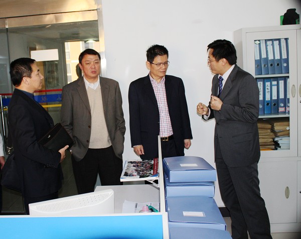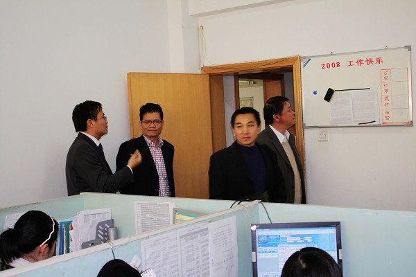 黃博愛董事長(zhǎng)、江明首席執(zhí)行長(zhǎng)在陸益勤總裁和總裁助理孫敏的陪同下,饒有興致的參觀了各部門的工作。
