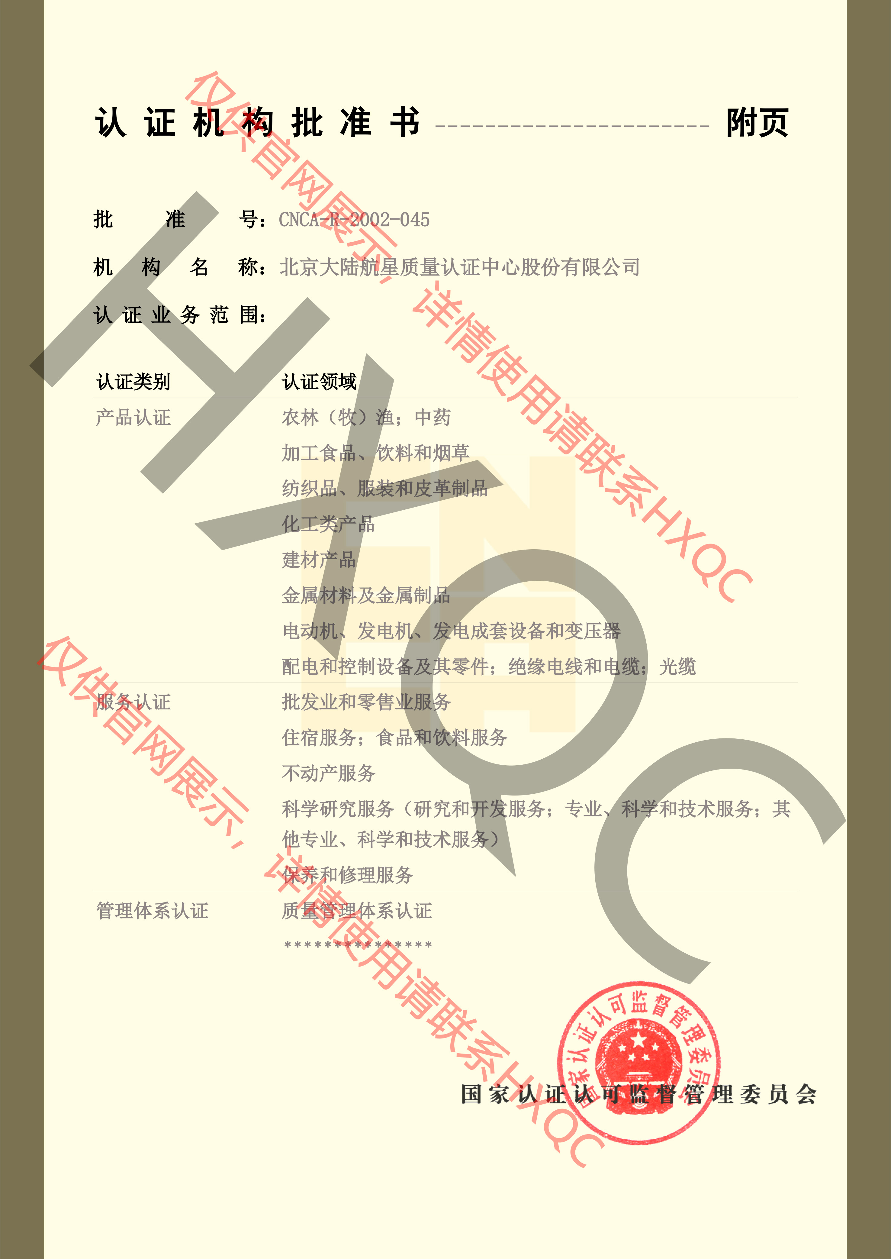 認(rèn)證機(jī)構(gòu)批準(zhǔn)書