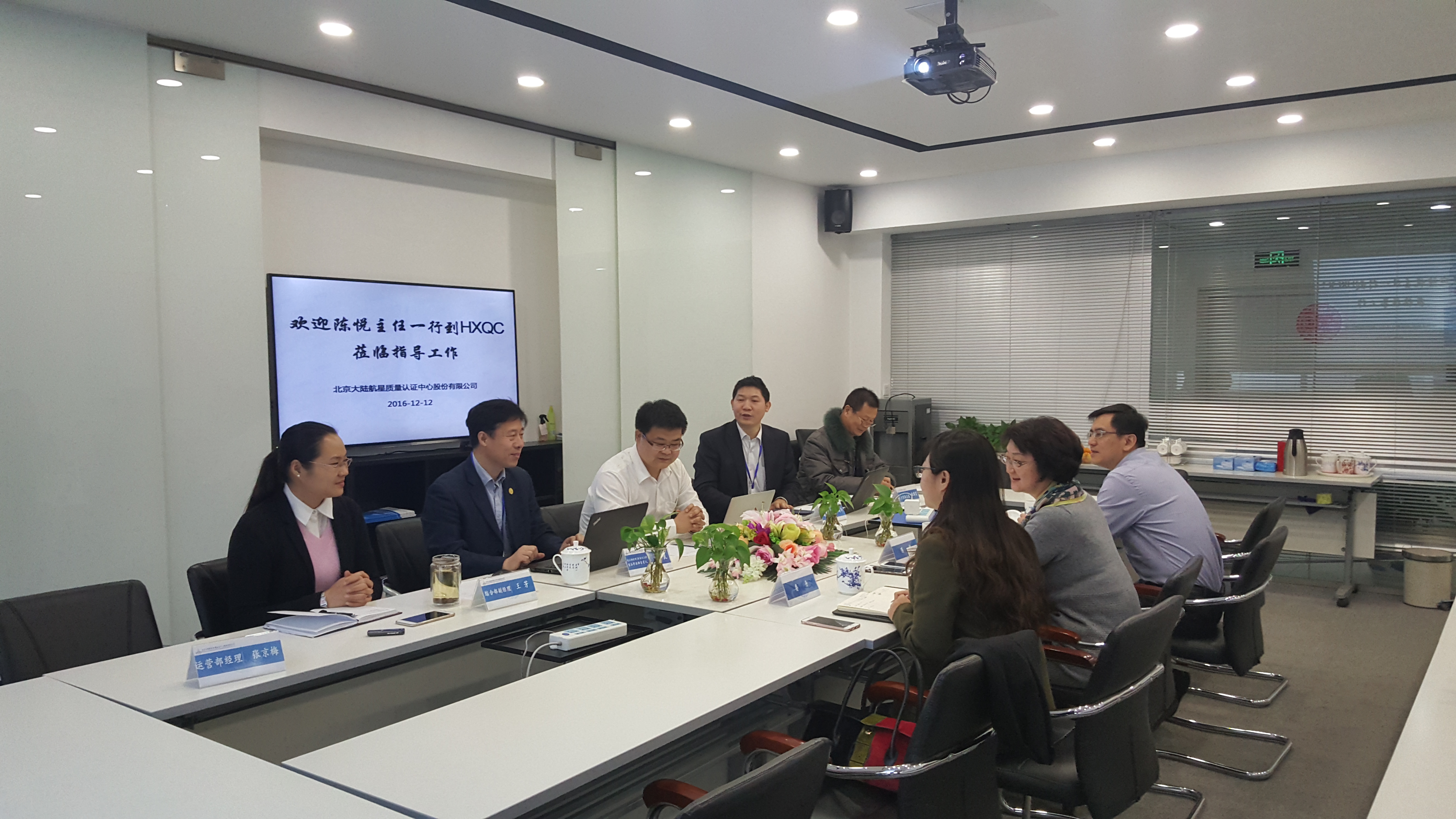 2016年12月12日中國國家認證認可監(jiān)督管理委員會科技與標準管理部(以下簡稱認監(jiān)委科標部)副主任陳悅、科技處王曉冬處長、婁丹副調(diào)研員一行三人到HXQC調(diào)研。HXQC總經(jīng)理鄭宇兵、副總經(jīng)理韓海華、人力資源總監(jiān)陸錦富、技術委員會主任兼技術部經(jīng)理趙忠良等中高層領導參加了調(diào)研會議。