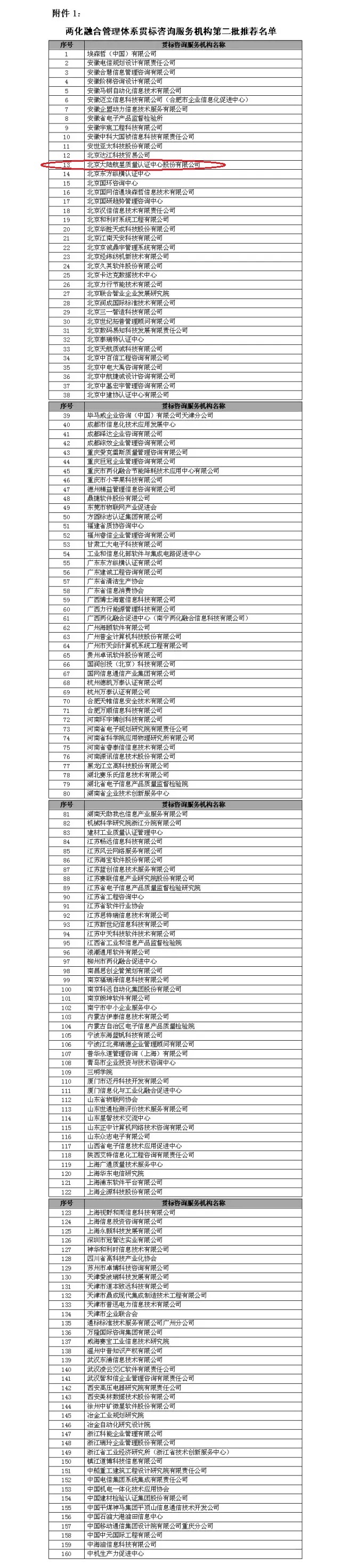 2015年8月,北京大陸航星質(zhì)量認證中心股份有限公司(HXQC)向國家工業(yè)化和信息化部提交兩化融合管理體系貫標(biāo)咨詢機構(gòu)的申請,經(jīng)過半年審核獲得批準(zhǔn)。