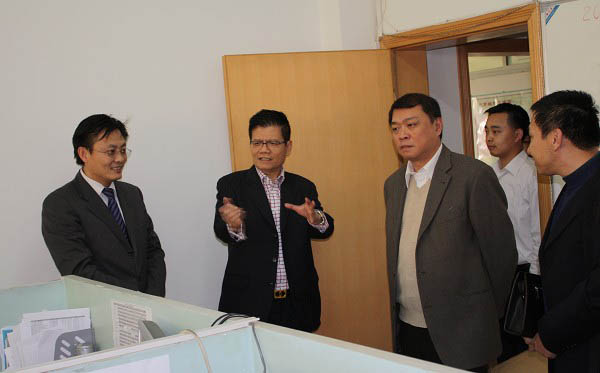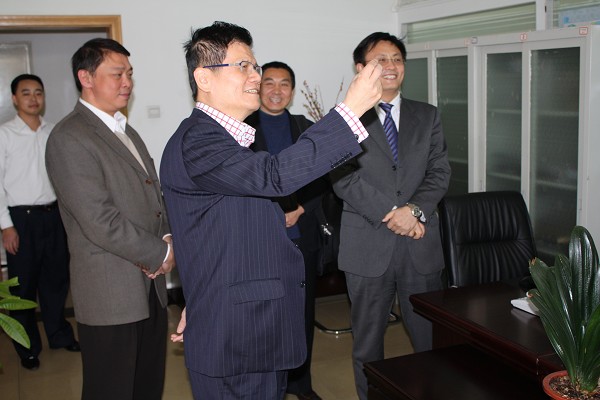 黃博愛董事長(zhǎng)、江明首席執(zhí)行長(zhǎng)在陸益勤總裁和總裁助理孫敏的陪同下,饒有興致的參觀了各部門的工作。