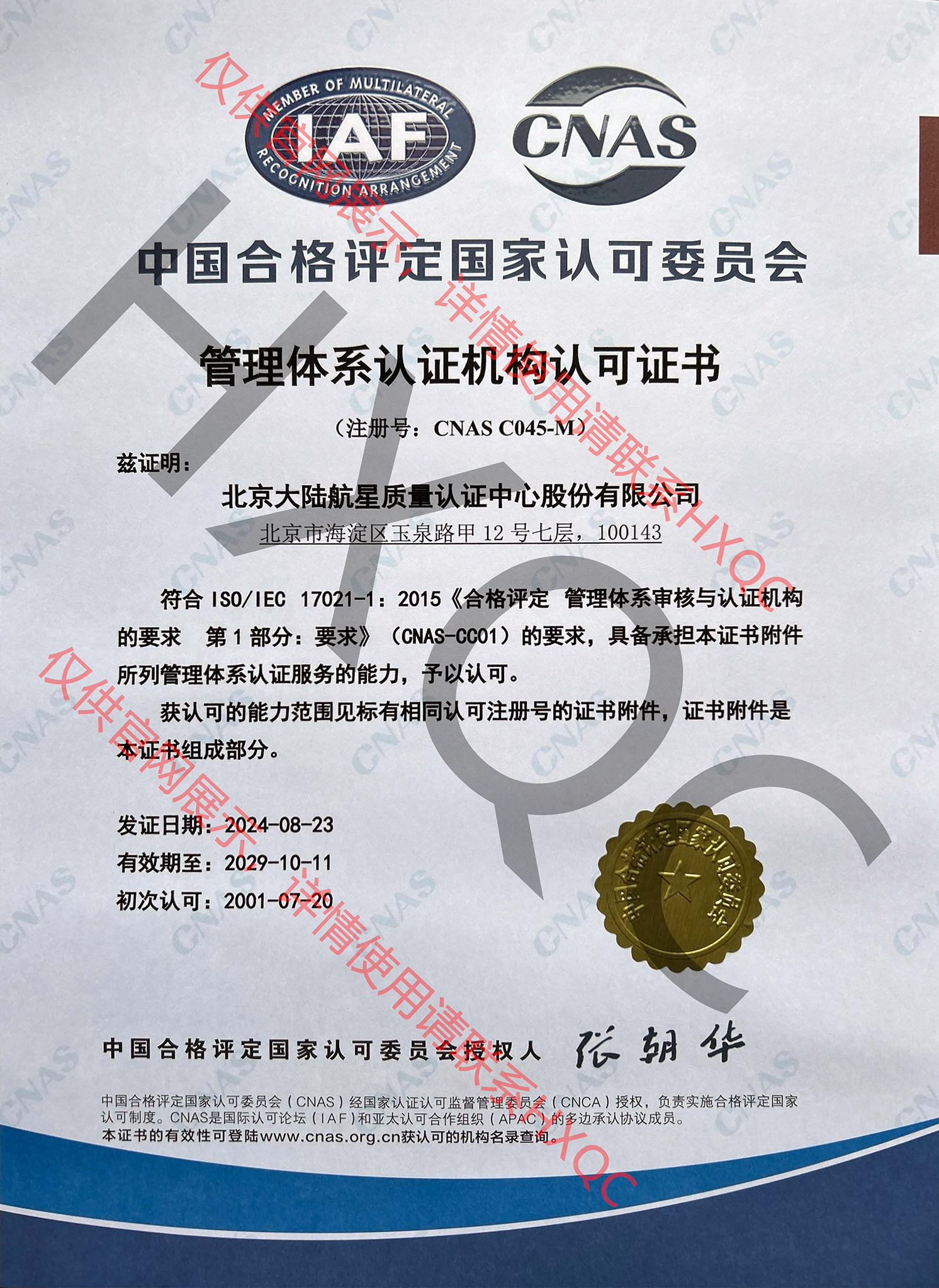 CNAS認(rèn)可證書