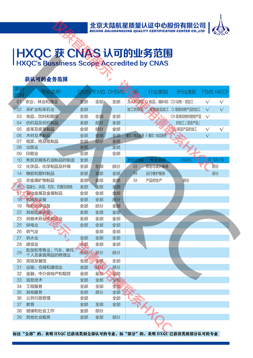 CNAS認(rèn)可業(yè)務(wù)明細(xì)