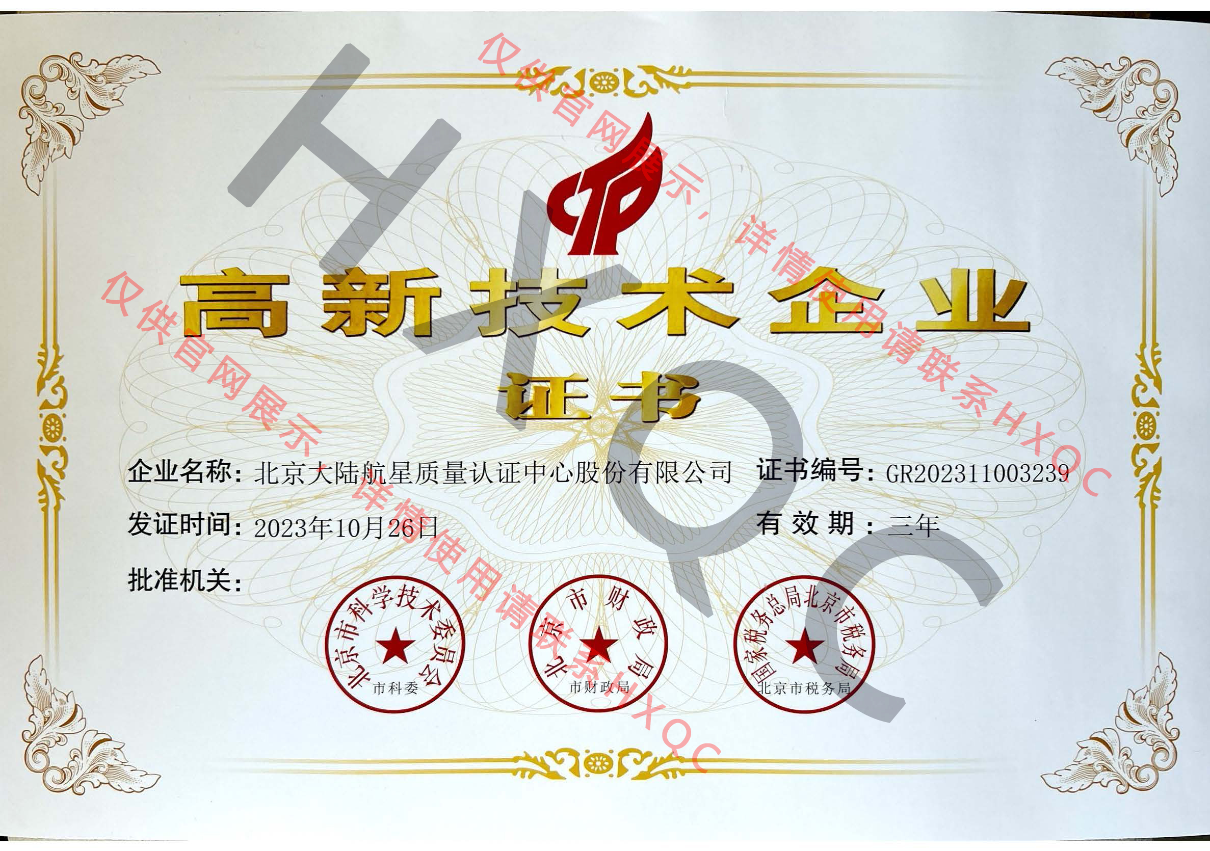 高新技術(shù)企業(yè)證書